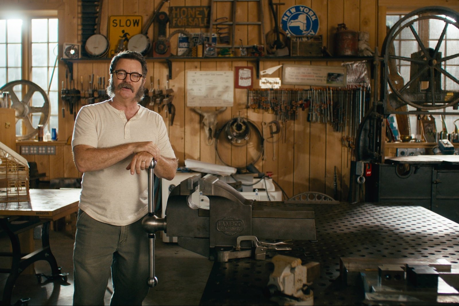 However actually, it is as a result of for the previous 23 years, the actor, who is understood for his roles in Parks and Recreation, The Final of Us, and Fargo, has led the Offerman Woodshop, a small collective in Los Angeles that handmakes every little thing from tables to ring bins.